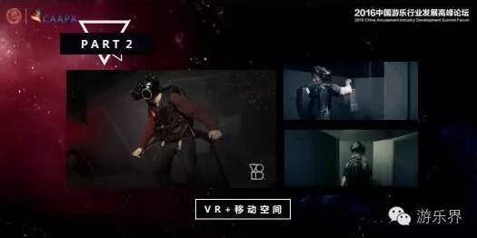 第三種是VR加上實景的環(huán)境,就是風(fēng)火雷電等,讓人有環(huán)境上的體驗,這個是一般家庭環(huán)境很難達到的,但是這個在室內(nèi)室外主題樂園都可以達到。