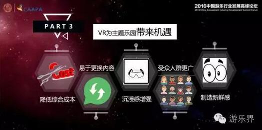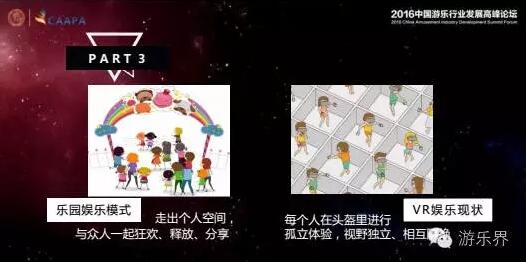 另外一個就是模式,我們主題樂園一直鼓勵人們走出去,到戶外,不要待在家里,然后VR則是頭盔戴上去,一個人享受。