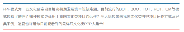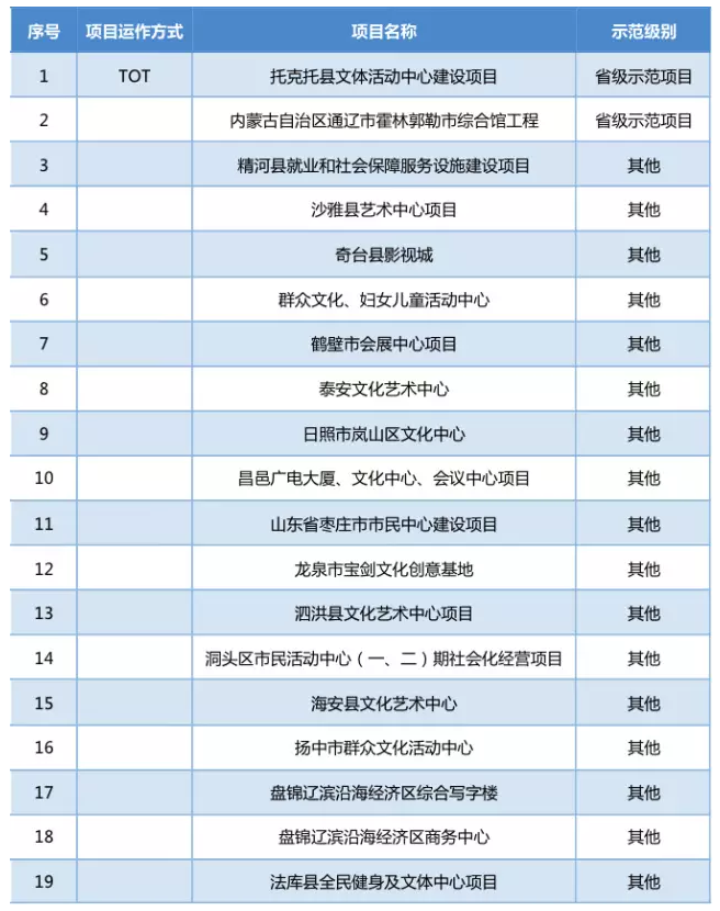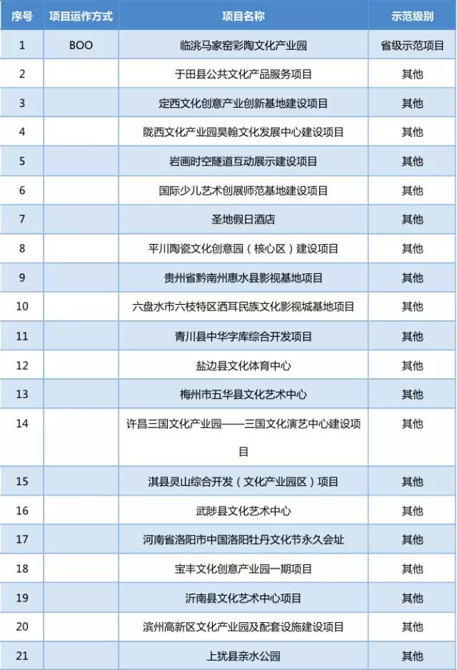 附錄:文化類PPP項(xiàng)目盤點(diǎn)(除BOT運(yùn)作方式)