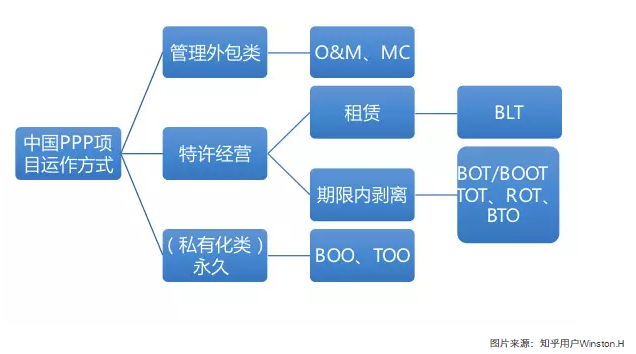 社會(huì)資本或項(xiàng)目公司通過投標(biāo)等方式,從政府部門獲得對某個(gè)項(xiàng)目的特許權(quán),一般合同期限為20~30年。然后項(xiàng)目公司對新建項(xiàng)目進(jìn)行運(yùn)作,包括設(shè)計(jì)、融資、建造、運(yùn)營、維護(hù)和用戶運(yùn)營維護(hù)等,并獲得項(xiàng)目收益。一般政府還會(huì)給予某些優(yōu)惠用以吸引投資人。在特許期結(jié)束后,將該項(xiàng)目資產(chǎn)和相關(guān)權(quán)利無償或有償移交給政府。適用于新建項(xiàng)目。