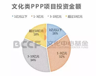 根據(jù)財(cái)政部政府與社會(huì)資本合作中心公布的資料(截至9月30日),在共計(jì)301項(xiàng)文化類PPP項(xiàng)目中,投資金額3~10億元占比最大。具體而言,投資金額小于1億元的有47個(gè),占比16%;投資金額在1~3億元區(qū)間的有96個(gè),占比32%;投資金額在3~10億元區(qū)間的有103個(gè),占比34%;投資金額在超過10億元區(qū)間的有55個(gè),占比18%。