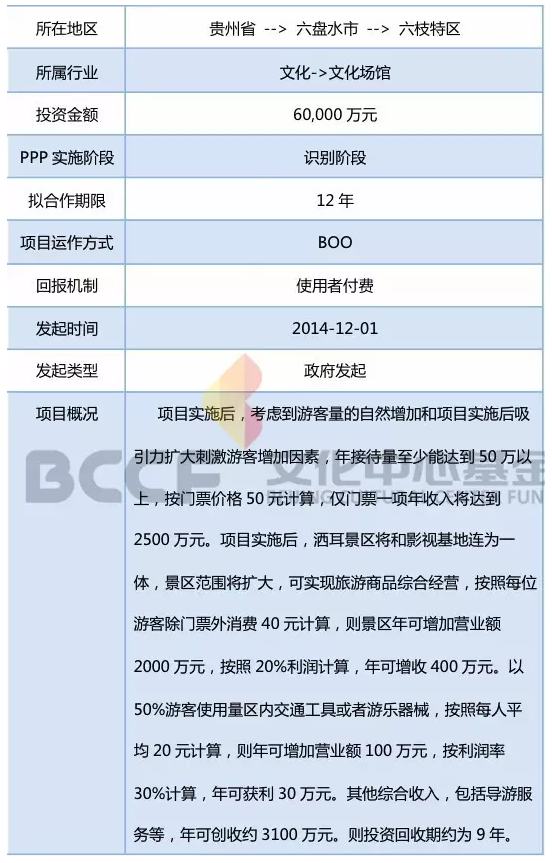 以上只是PPP模式在文化產(chǎn)業(yè)中的部分應(yīng)用。PPP模式作為文化領(lǐng)域投融資創(chuàng)新嘗試,它還應(yīng)用在包括旅游項(xiàng)目,如廣西的姑婆山旅游區(qū)游客集散中心;文化保護(hù)項(xiàng)目,如云南的澄江化石地博物館和石屏縣非物質(zhì)文化遺產(chǎn)傳承館;園區(qū)及文化設(shè)施建設(shè)項(xiàng)目,如河南洛陽的欒川縣鳳凰廣場等方面。