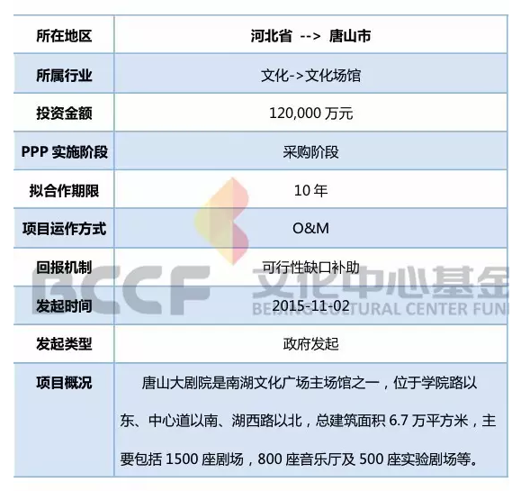 在《文化部辦公廳關(guān)于做好第三批政府與社會(huì)資本合作示范項(xiàng)目申報(bào)篩選工作的補(bǔ)充通知》的利好政策之下,10月中旬,財(cái)政部會(huì)同19部委公布了第三批政府和社會(huì)資本合作示范項(xiàng)目,河北省唐山市唐山大劇院、松北新城綜合場館等多個(gè)文化類項(xiàng)目成功入選。作為一種新型項(xiàng)目融資模式,PPP正影響著文化產(chǎn)業(yè)的融資格局。文化類PPP項(xiàng)目現(xiàn)狀如何?有哪些案例可供我們借鑒?文化中心基金為您梳理。