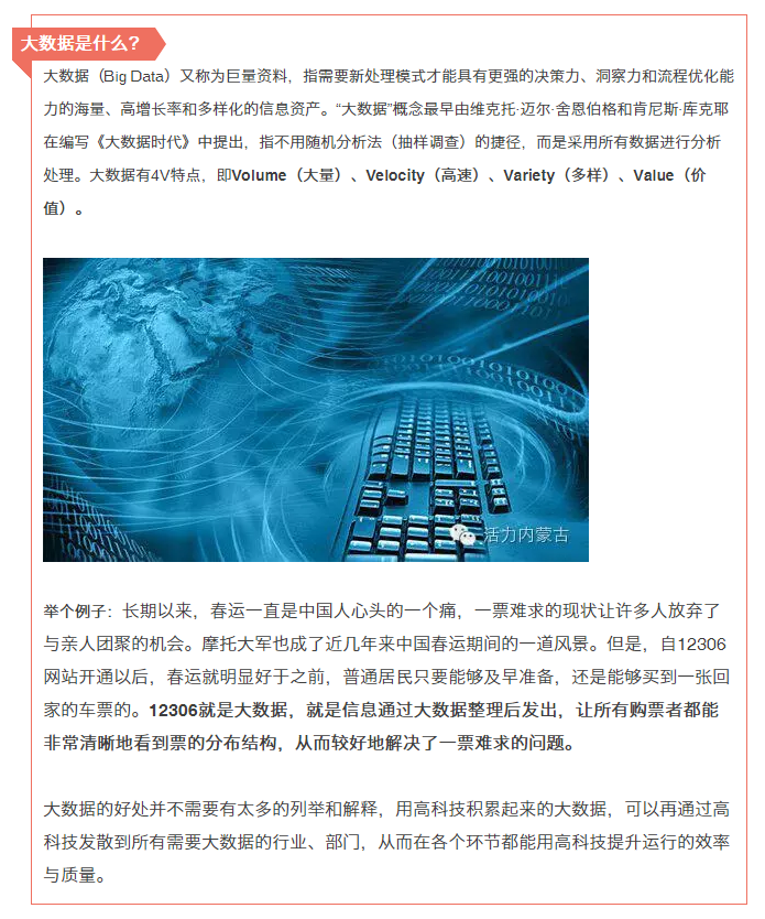 今年10月初,內(nèi)蒙古入選第二批國家大數(shù)據(jù)綜合試驗(yàn)區(qū),又為發(fā)展大數(shù)據(jù)產(chǎn)業(yè)提供了重大政策機(jī)遇。