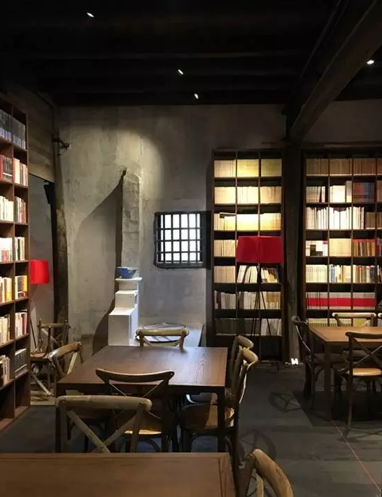 書店內(nèi)部的結(jié)構(gòu)很是干凈利落,左邊是書架,有一個個小隔間;右邊是看書的地方,靠著巨大的落地窗;中間是一條長長的走廊,通往盡頭的餐區(qū)。功能劃分十分明確,簡單明了。