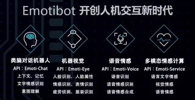 這些其實都源于 Emotibot 的底層機器人算法技術,上述都只是一整套人機交互邏輯中的一個點。Emotibot 還開發(fā)了可以在對話框識別文字意圖和語音情感的 API 接口,相應也有上下文邏輯連續(xù)的文字表達和語音合成程序,這樣的擬人化對話輸出設計。