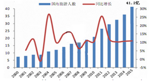 2015年全年接待國(guó)內(nèi)外旅游人數(shù)為41.2億人次,旅游總收入達(dá)到4.13萬(wàn)億元,對(duì)GDP綜合貢獻(xiàn)達(dá)到10.1%,成為經(jīng)濟(jì)增長(zhǎng)新引擎。另外實(shí)現(xiàn)了"十二五"時(shí)期旅游業(yè)發(fā)展的漂亮收官,并開(kāi)啟了旅游發(fā)展的新時(shí)代。