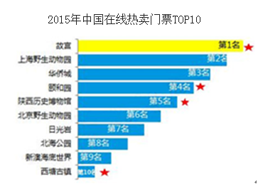 2015年熱銷景區(qū)門票TOP10中,以北京景區(qū)數(shù)量最多;同時(shí),歷史文化類占四成。隨著文化旅游市場(chǎng)迅速發(fā)展,促使歷史文化類旅游這種具有文化教育意義的資源成為熱門產(chǎn)品。