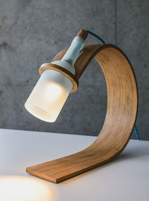 Quercus 是一款以環(huán)保和廢物回收利用為出發(fā)點(diǎn)的臺(tái)燈,無(wú)論是材料,還是能耗,還是回收,都實(shí)踐了從「搖籃到墳?zāi)埂沟脑O(shè)計(jì)理念。這款臺(tái)燈包括一個(gè)用切開(kāi)的葡萄酒瓶的上半部分做成的燈罩,磨砂效果讓燈光更加柔和;采用一體化設(shè)計(jì)的燈座用從當(dāng)?shù)鼗厥盏膹U木頭做成,采用彎曲木工藝處理,在高溫下用蒸汽蒸并彎曲,然后定型;光源為一個(gè) LED 燈泡。唯一用到的粘合材料就是將彎曲的燈座和卡住燈罩的木質(zhì)圓環(huán)連接在一起的膠水。