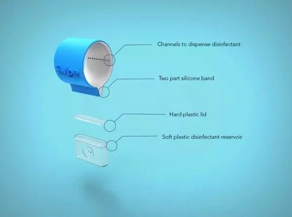 辦公室每天很多人進進出出,門把一進一出都需要用手拉一下,實際上門把手上的細菌比馬桶還要多,對于有潔癖的人士是難以接受的。Swipe是一個迷你的門把手消毒滑塊,對于那些特別愛干凈的人來說相當有用。將Swipe套在門把上,開門時拽著Swipe的一端來回一滑,整個把手就消毒干凈,你就能放心地握著門把開門,也體現出設計師相當注重生活細節(jié)。