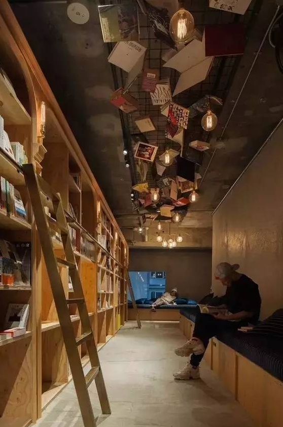 就連天花也掛滿(mǎn)了各式書(shū)籍,