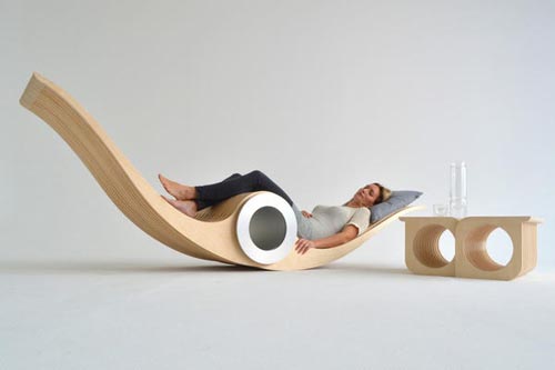 一把可以像水中魚兒一樣靈活多變的椅子,椅子用原木制作而成,整個椅子造型被設(shè)計成魚形狀,在以魚頭作為固定中心,尾巴可以進行多維度翻轉(zhuǎn),以適應(yīng)人們各種使用體驗,你可以把它當做座椅、躺椅、靠椅或者凳子來使用。這樣一件多功能創(chuàng)意椅子,感覺可以代替好幾樣家具,閱讀、冥想、打盹、吃零食,還能愉快的玩耍。