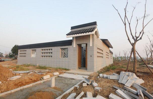 全程由電腦程序操控,成本低省錢省力省料更快更環(huán)保。這兩套別墅是使用3D打印技術(shù)一次性“打印”出來的,偏中式風(fēng)格。