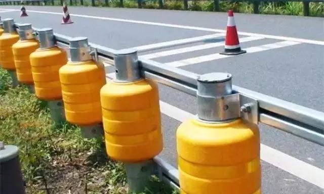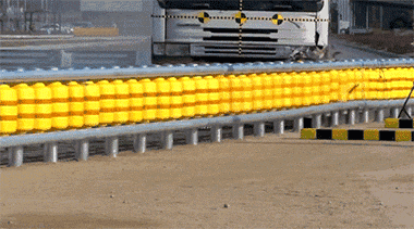 當(dāng)車子撞到護(hù)欄,里面配備的筒子會(huì)旋轉(zhuǎn)滾動(dòng)