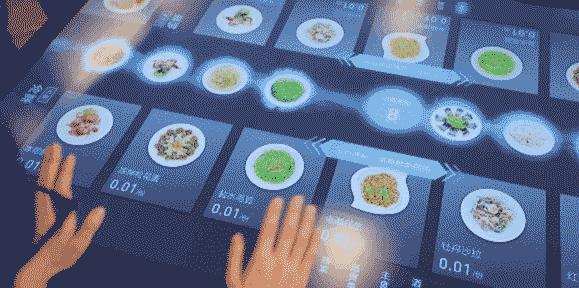 2、落座。未來智能餐廳的桌面實際上就是一張大尺寸的觸控顯示屏,顧客入座后,系統(tǒng)自動識別身份,然后通過輕觸桌面或手勢動作,即可打開智能點餐界面進行點餐。